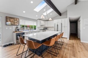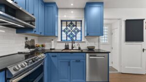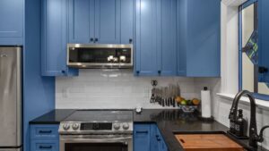 Seattle BungalowThis one-of-a-kind remodel showcases our client’s love for rich blue tones and smart design. The journey began well before the demo crew showed up on site, with an in-depth pre-construction process where we collaborated closely to plan how to maximize functionality within a minimal footprint. Our custom cabinet maker sourced and implemented specialty hardware, and we worked hand in hand to make the most of every inch. The bathroom received an azul shower and tile floor while the rest of the home received a refinished and stain-matched oak hardwood. The result is a space that’s both efficient and visually unique.