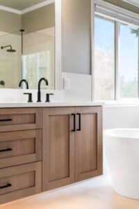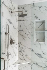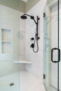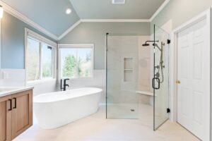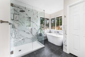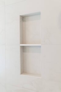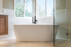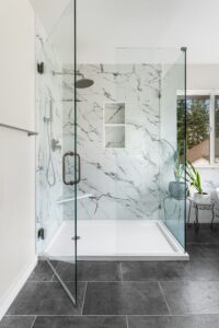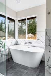Silver Firs Primary BathroomNot every bathroom needs to be gutted and reconfigured to make a big impact. For this project, the client wanted to keep the existing floor plan while giving the space a modern upgrade—and that’s exactly what we delivered. The shower features ultra-large format tile, a double niche, frameless glass, and a new showerhead with a handheld combo for added functionality. We removed the built-in tub and replaced it with a striking freestanding unit, complete with a wall-mounted filler for a clean, contemporary finish.
